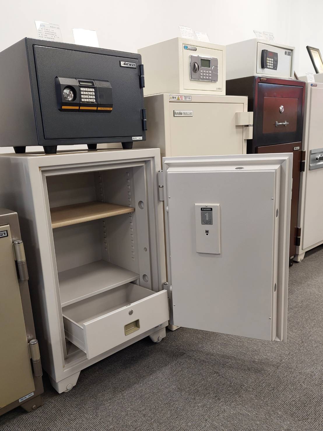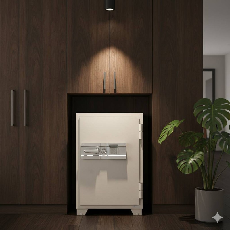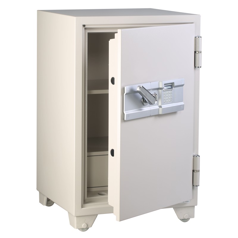- 文件與票據安全:通過 JIS 標準加熱測試,具備 1hr 防火等級,可在火災發生初期有效控制櫃內溫度於 177°C 以下,足以覆蓋多數建物初期火災風險,讓紙本文件與重要票據不易炭化受損。