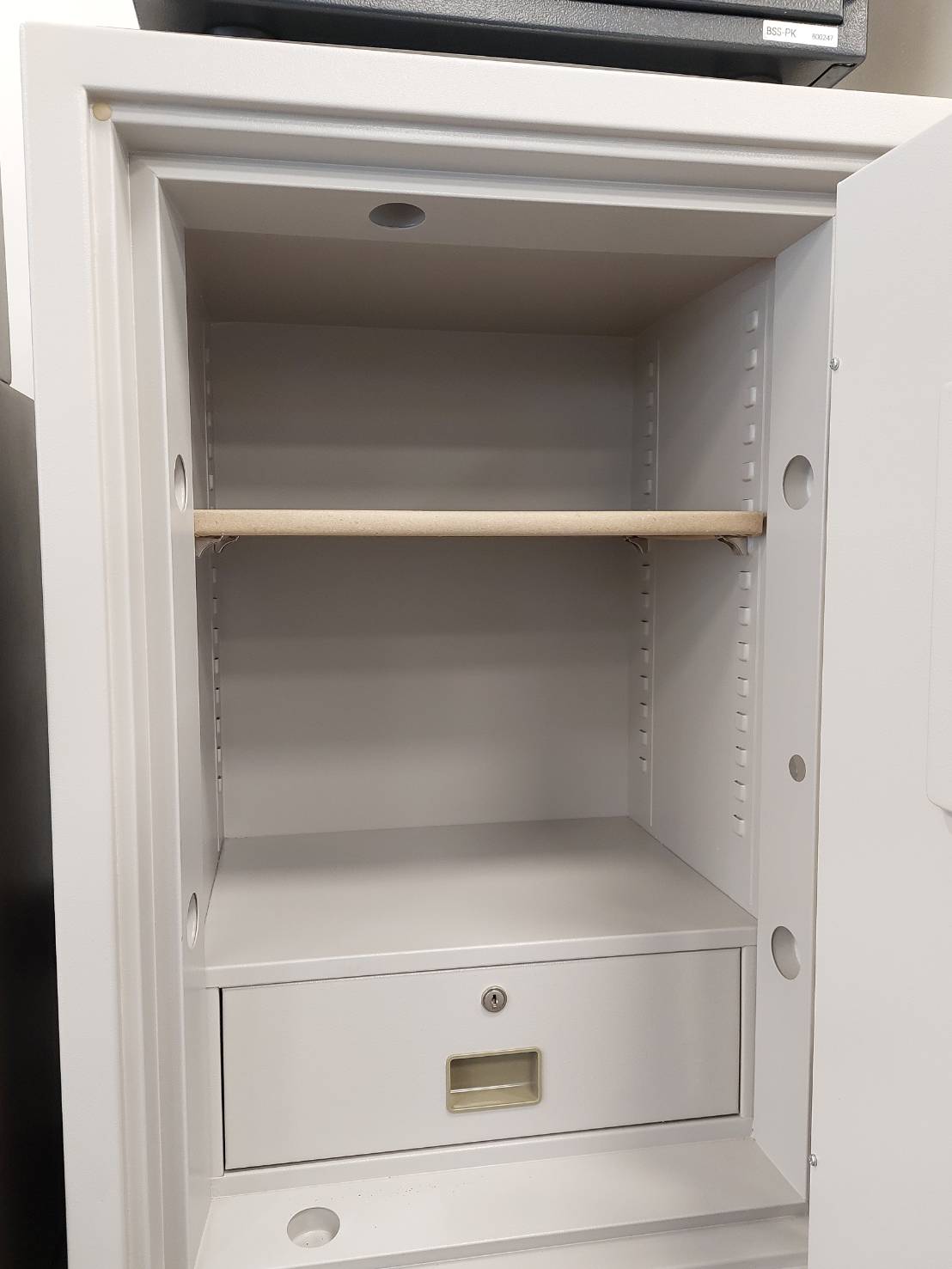 保險箱內裝設固定式抽屜+鑰匙鎖和鋼製棚板,增加儲物功能有效空間利用最大化。