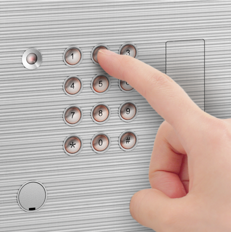 門扇外側設置馬達驅動雙重鎖舌:當鑰匙轉動、密碼輸入正確,系統發出訊號將鎖舌解鎖即可開啟金庫,4秒後會自動上鎖。