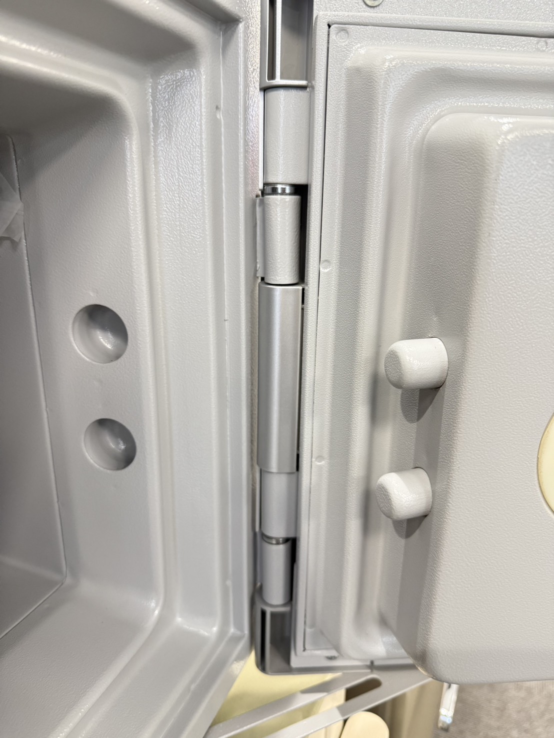 保險箱底部裝了門擋,以防止門打開過大,不僅可以防止保險箱門損壞,還可以防止損壞周圍的家具和牆壁。