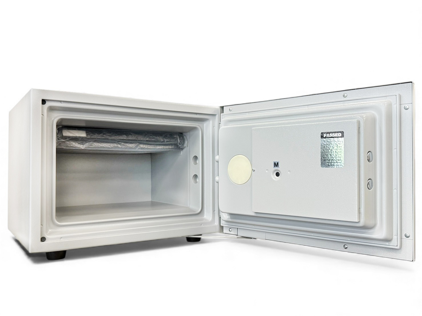 - 內層採用 特殊防火填充材,即使外殼高溫變形,內部文件、現金無明顯變色或變質