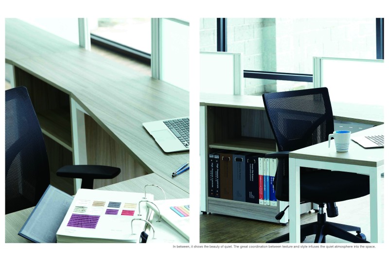 1. 桌板:採用厚度 25mm 塑合板,表面貼有 0.8mm 厚美耐板,四邊ABS平封邊,不易受潮、不易變形且堅固又耐用。