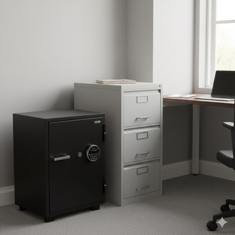 - 機械鑰匙/密碼:耐用、維護簡易,適合長期文件保管